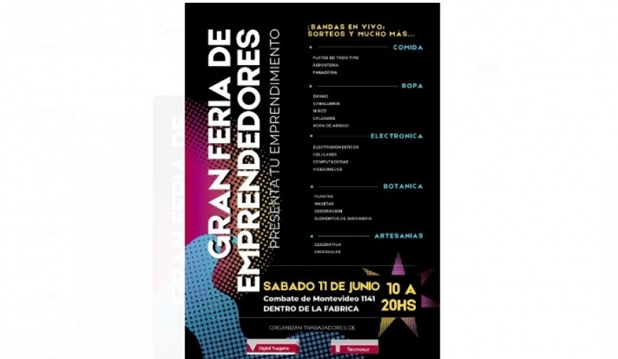 Trabajadoras y trabajadores de Digital Fueguina organizaron una feria y festival artístico para este sábado, que se llevará adelante en la propia planta fabril de calle Combate de Montevideo 1141, entre las 10 y las 20 horas. Marcos González, uno de los operarios, comentó que llevan “13 meses de incertidumbre, sin ninguna novedad, en los cuales los compañeros no han podido solucionar sus problemas. Por eso se nos ocurrió lo de organizar una feria, para que ellos puedan exponer los productos que venden”, indicó.