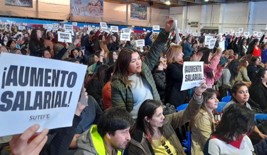 “Citamos hoy a las 15 horas al gremio docente, para establecer el aumento salarial que nuestros docentes necesitan. Porque lo hicimos el primer día de gobierno recuperando el salario que otros recortaron, porque hoy nos podemos expresar libremente, porque tenemos paritarias libres que otro gobierno las había prohibido. Porque recuperamos junto a ustedes derechos, como la reforma jubilatoria que otro gobierno había cortado y nosotros, junto a ustedes, la recuperamos. Por eso les digo a nuestros docentes que tienen razón que necesitamos aumento salarial ya y así va a ser, porque es nuestro compromiso y es lo que hemos demostrado desde el primer día y vamos a seguir demostrando hasta el último día”, señaló el gobernador, Gustavo Melella, ante el gran número de docentes que sostenían en sus manos un cartel con el reclamo de “aumento salarial”.