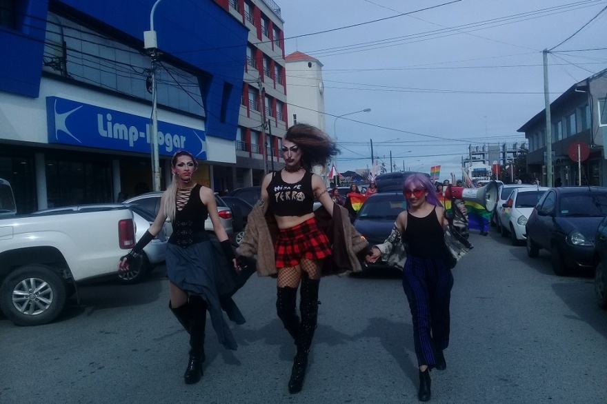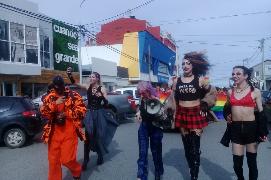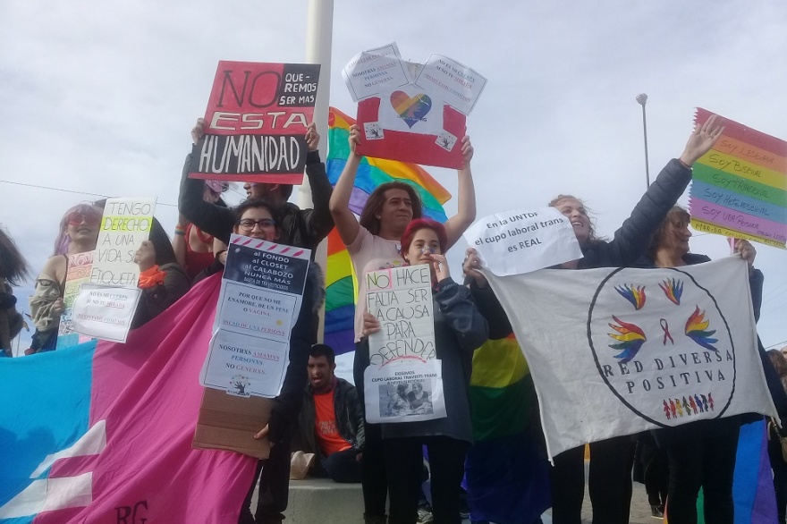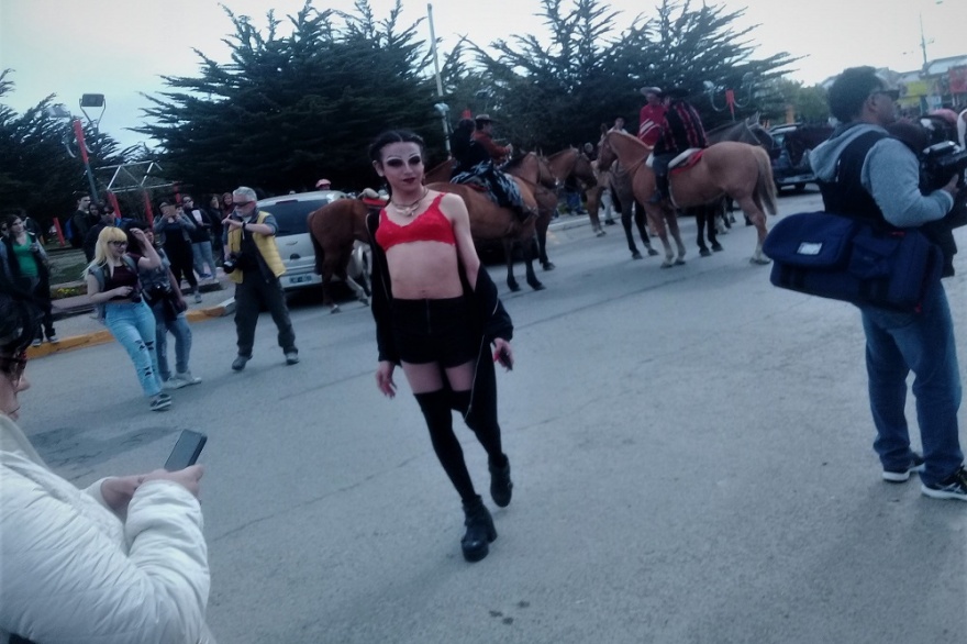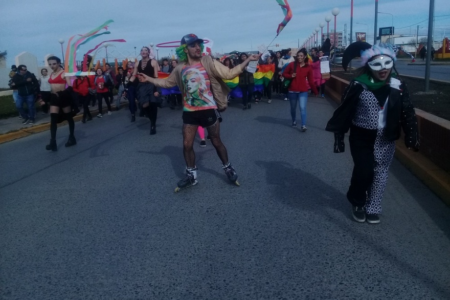 Una nutrida y colorida columna recorrió el trayecto desde la Plaza Almirante Brown, lugar donde también se concentraban los jinetes que participarían del desfile por el Día de la Tradición, hasta la Plaza de las Américas donde se realizó un breve acto en la rotonda para leer un texto con 12 puntos reivindicativos; con reclamos relacionados con los derechos para distintos sectores de nuestra comunidad que se sientes “disidentes” con lo normado y reclamos relativos a la cuestión de género, los travesticidios, la xenofobia, la homofobia, junto con la marginación y los padecimientos que atraviesan múltiples sectores de la población.