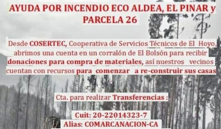 El presidente de la Cooperativa de Trabajo Cosertec de Servicios Técnicos Limitada, Alejo Cancelo, se refirió a la acción solidaria que vienen desarrollando y comenzó recordando que en la zona “se quemaron más de 500 casas y miles de hectáreas de bosque”.