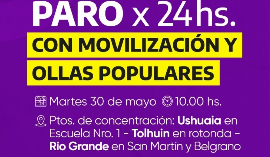 PARO PROVINCIAL de 24 hs., MOVILIZACIÓN y OLLA POPULAR para el día martes 30 de mayo.