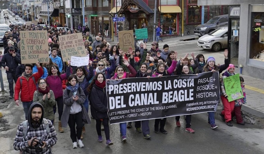 Nancy Fernández, integrante de la asociación ambientalista Mane´kenk, comentó que se encuentran “haciendo una campaña provincial y nacional con esta carta abierta que publicamos, para pedir que no se derogue la ley que prohíbe la salmonicultura en Tierra del Fuego. Ustedes saben bien que hay un proyecto de ley propuesto por el legislador (Agustín) Coto, que tiene la intención de habilitar la salmonicultura en el mar, y derogar la Ley 1355, que es una ley que surgió de la conquista de los movimientos sociales y de toda la comunidad fueguina que se involucró, en el año 2021”, repasó.