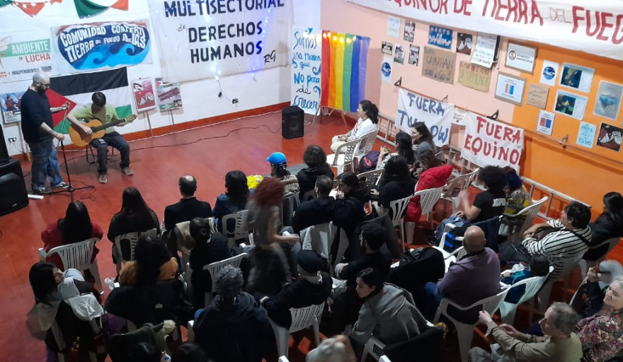 Las instalaciones del ex “Dionisio Teatro” se vieron desbordadas en todo momento, con personas que iban circulando durante las cinco horas que duró la “Primera Velada Artivista”, que se realizó en la ciudad de Río Grande por iniciativa de la Multisectorial de Derechos Humanos, la Asamblea Comunidad Costera TDFAeIAS y la agrupación Ambiente en Lucha y con la participación de los diferentes sectores que las integran.