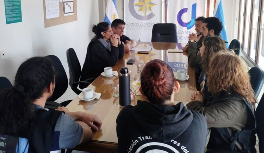Esta semana, dirigentes de la Asociación Trabajadores del Estado (ATE) Tierra del Fuego, Antártida e Islas del Atlántico Sur –entre ellos el secretario General, Carlos Córdoba y la secretaria Administrativa, Micaela Jones- se reunieron con los integrantes del Movimiento de Trabajadores, Estudiantes Universitarios y Jubilados Fueguinos (MTEUyJF); con la presidenta, Claudia Fernández y el vicepresidente, Daniel Juan González, de la Cámara de Comercio y otras Actividades Empresarias de Ushuaia; también estuvieron el rector, Mariano Herminda y el vicerrector, Juan Ignacio García, de la Universidad Nacional de Tierra del Fuego (UNTDF); para analizar el proyecto de modificación de la Ley 844 de Abastecimiento, que propone una nueva forma de administrar la economía provincial.