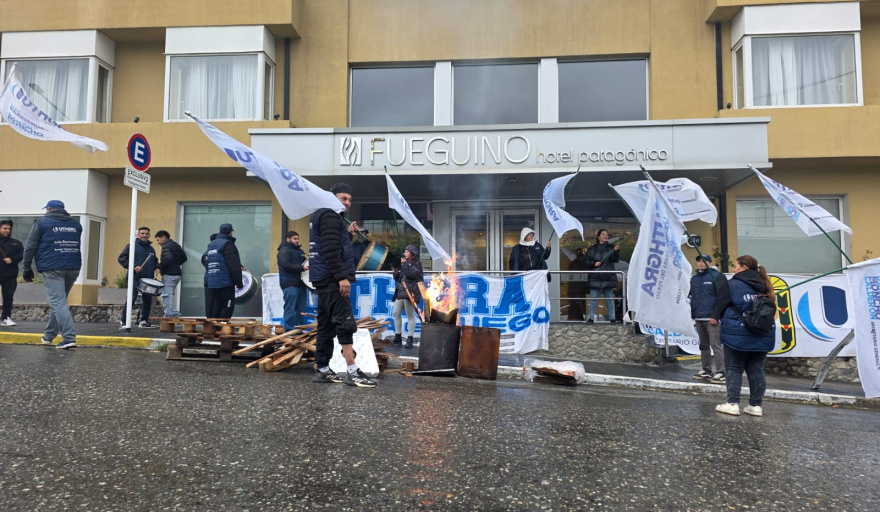 Trabajadores del sector hotelero se manifestaron en las puertas del Hotel Fueguino, en la ciudad de Ushuaia, a raíz del despido de una empleada que, según denunciaron desde el gremio, se encontraba bajo una modalidad de contratación mensual, desde hace más de cuatro años.