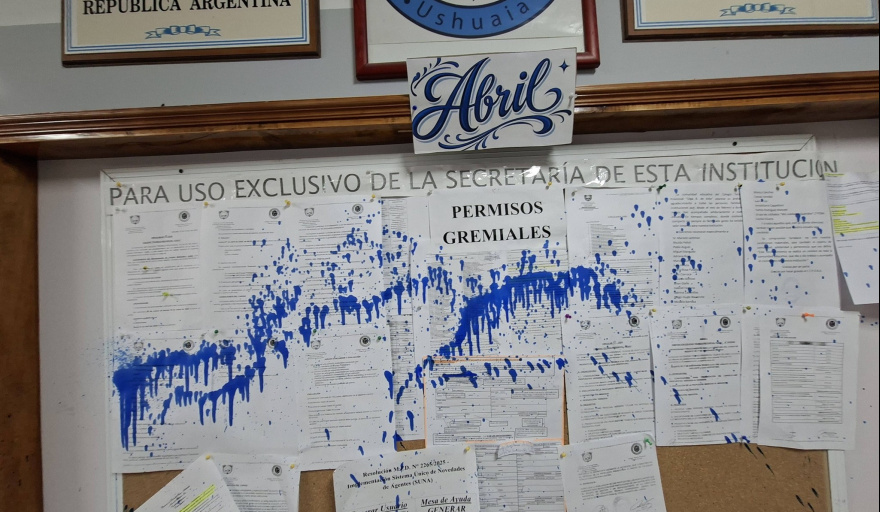 Consultado al respecto, el secretario General de la Asociación del Magisterio de Educación Técnica, Juan Carrizo, en declaraciones que publicó el portal “Infofueguina” expresó que: "hoy está toda manchada, los pisos siguen manchados, las paredes", y advirtió que "no hay una acción concreta ni que estén dándole seguridad ante los mensajes que estaban escritos".