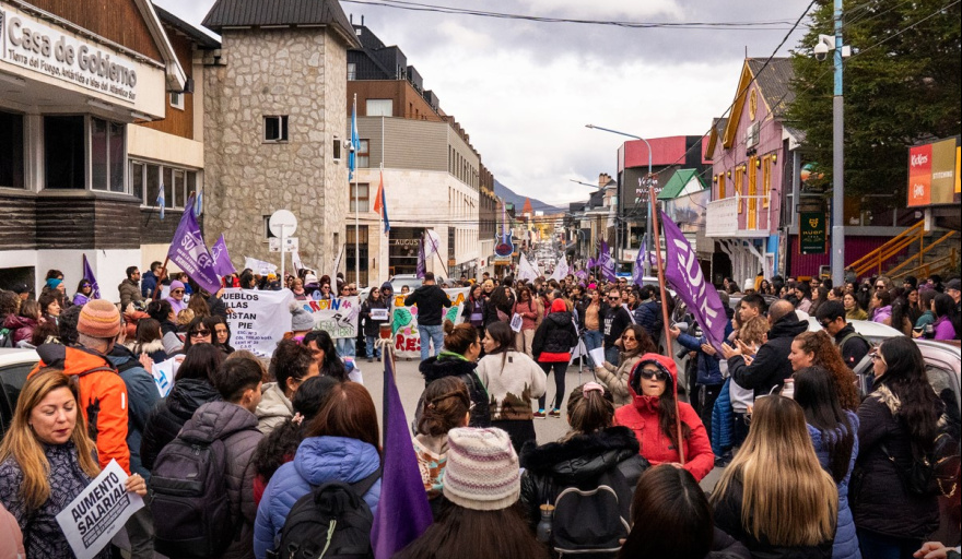 09:56 |La docencia fueguina llevó adelante un paro de 48 horas, convocado por el SUTEF, con una movilización el día miércoles 8 de abril, que unificó el reclamo de las tres ciudades en las calles de Ushuaia. La columna, integrada por delegaciones de Río Grande, Tolhuin y Ushuaia, partió desde la Escuela N.º 1 y recorrió la avenida Maipú con un pliego de demandas urgentes: tratamiento y sanción inmediata de la Ley de Financiamiento Educativo, reapertura inmediata de las paritarias y aumento salarial acorde al Salario Mínimo, Vital y Móvil. En simultáneo con la movilización en Ushuaia, la protesta se hizo sentir en Río Grande con el encendido de tachos frente a diversas instituciones educativas.
