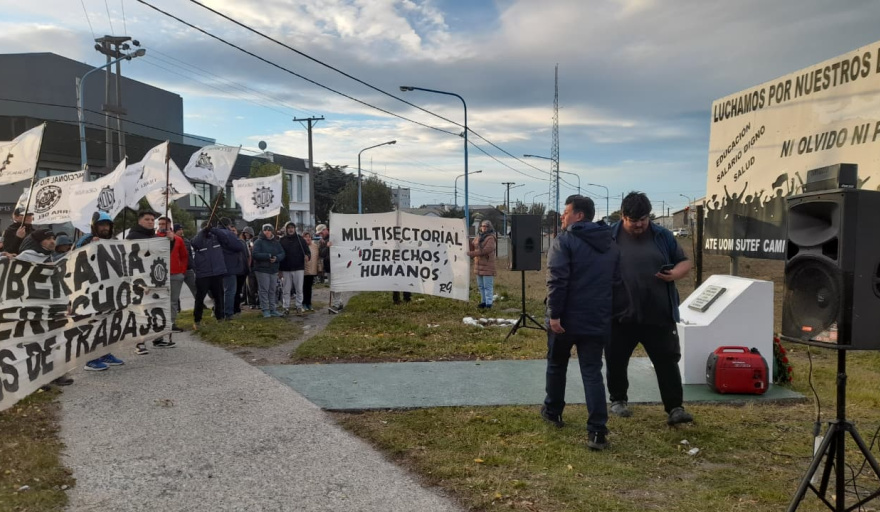 El acto se realizó en el monolito ubicado en O´Higgins y Ricardo Rojas, convocado por la UOM seccional Río Grande y con el acompañamiento de la Multisectorial de Derechos Humanos, el Bachillerato Popular, Izquierda Socialista y referentes de otros sectores gremiales y sociales.