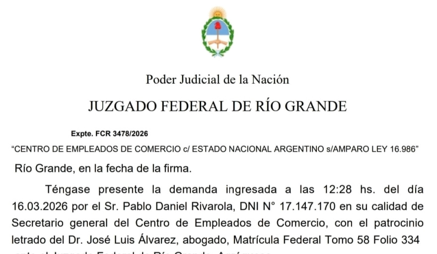 El secretario General del Centro de Empleados de Comercio de Río Grande, Daniel Rivarola, comenzó confirmando que “Con fecha 16 de marzo de 2026, presentamos un amparo para que se declare la nulidad, inconstitucionalidad y anti-convencionalidad de la Ley N° 27.802, ya que la consideramos regresiva, porque reduce derechos individuales y colectivos, abarata el despido, flexibiliza la jornada laboral y debilita la negociación sindical”.